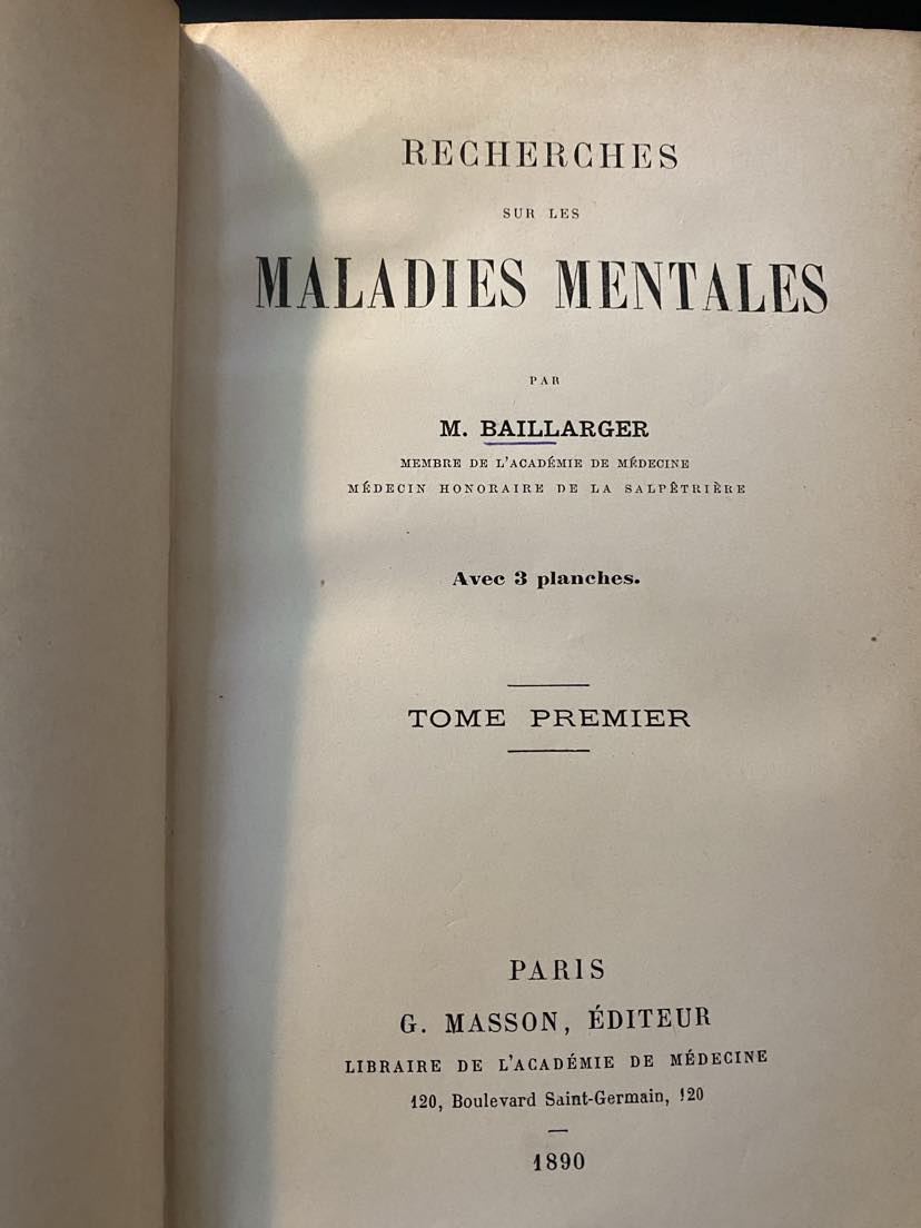 Baillarger, M. (1890) Recherches sur les maladies mentales Tome I+II.