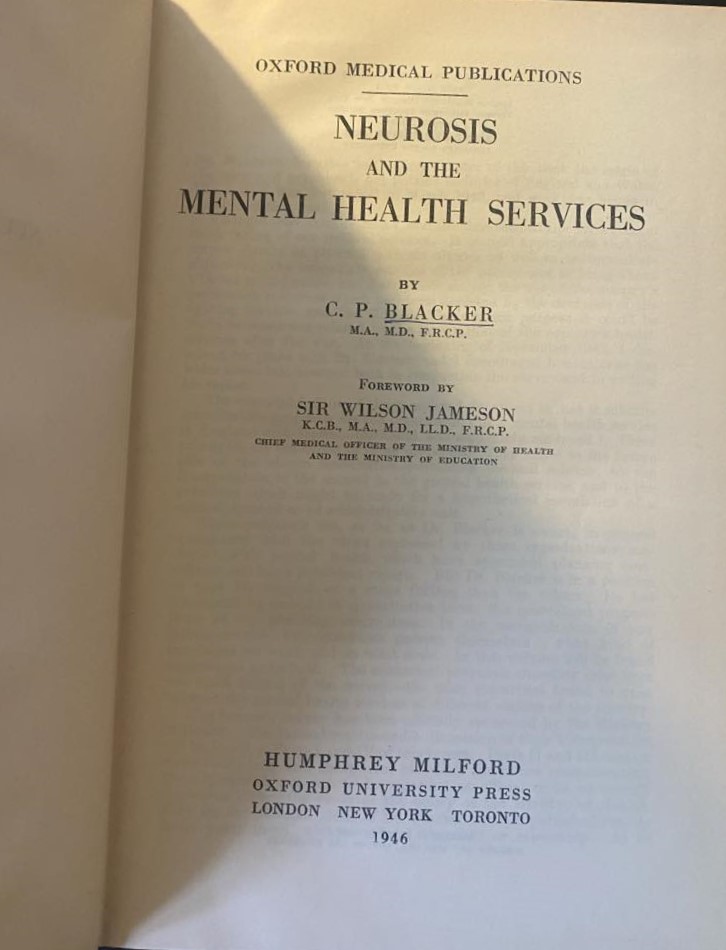 Blacker, CP. (1946) Neurosis and the Mental Health Services