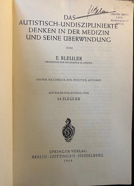 Bleuler E (1963) Das autistisch-undisziplinierte Denken in der Medizin und seine Überwindung.