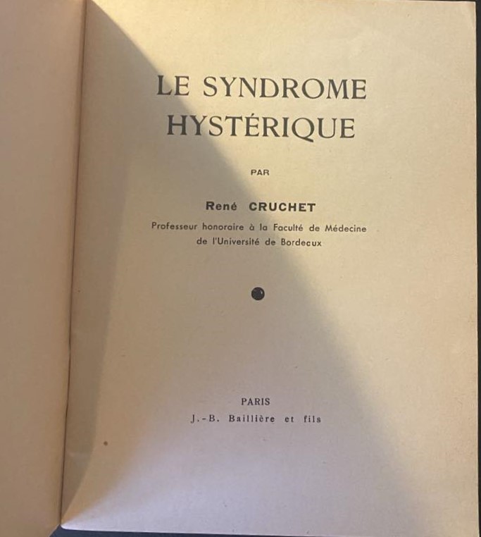 In his book “Le syndrome hystérique,” Cruchet likely explores the clinical features, etiology, and diagnostic criteria associated with hysteria, which was a prominent psychiatric diagnosis at the time. Hysteria was historically characterized by a range of physical symptoms without apparent organic cause, often attributed to psychological factors.
