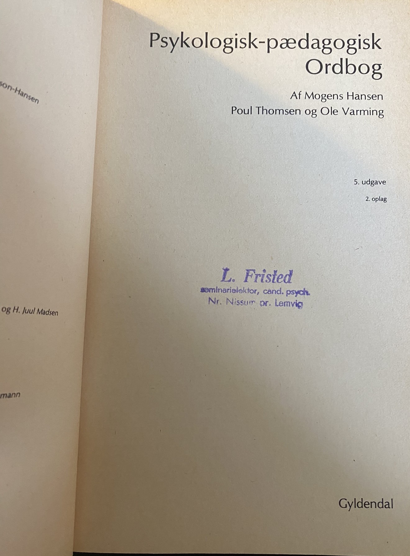 Hansen, Thomsen & Varming (1982) Psykologisk-pædagogisk ordbog, 5.udgave, 2.opl.