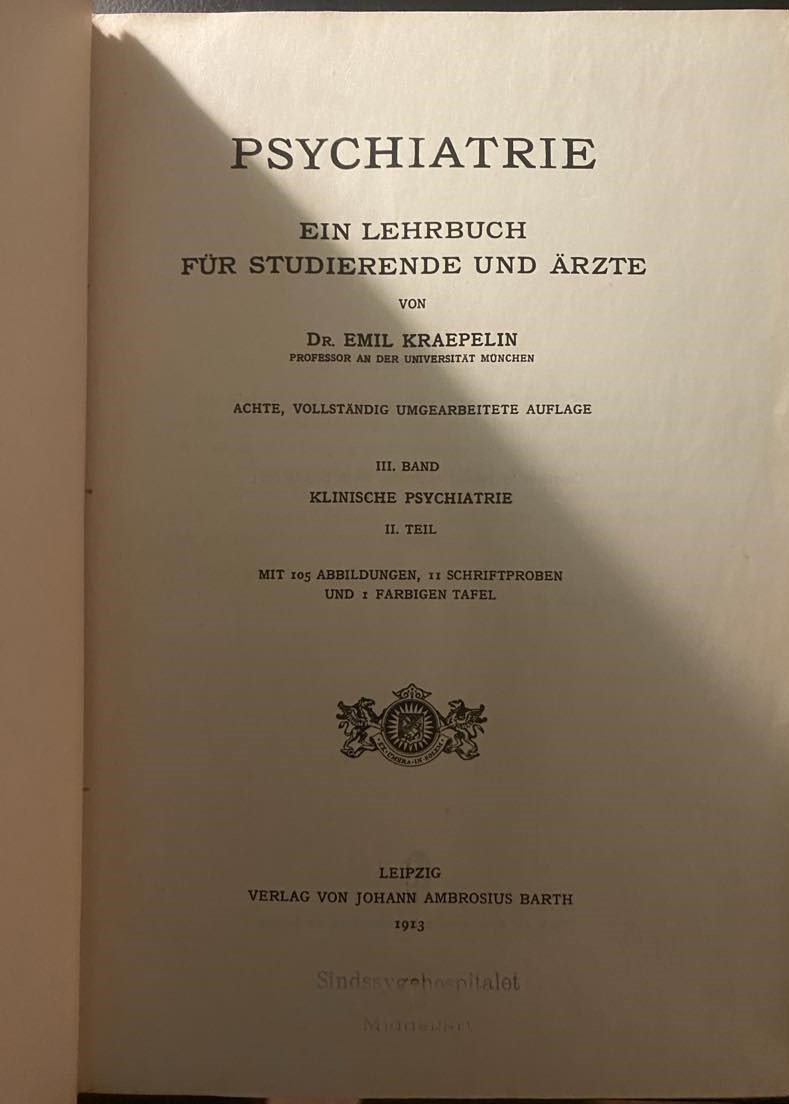 KRAEPELIN, Emil. (1909-1915) Psychiatrie. 1909-1915. In four volumes. I, II, II, IV. 8th EDITION Revised.