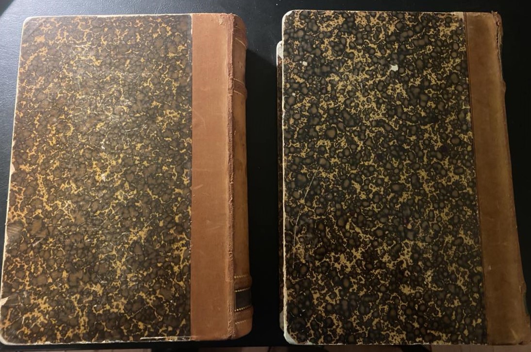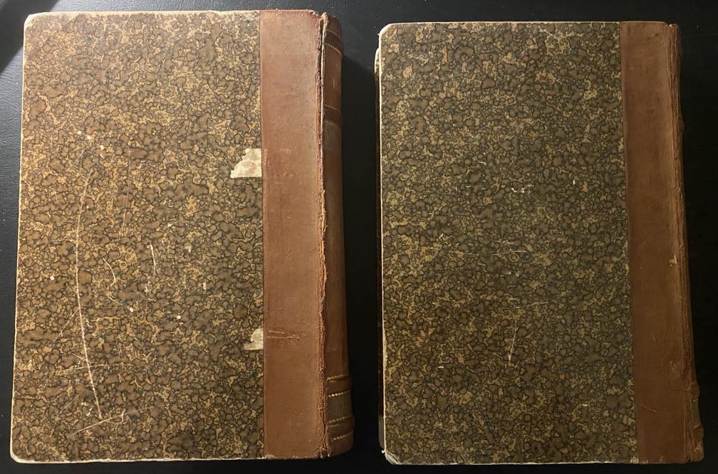 Shelf and spineworn books that has all pages and leaves present, spine re-glued vol 1 + tapetracks and minor topspine-repair on vol 4. Otherwise no tears on either binding or paper. Ex-library.